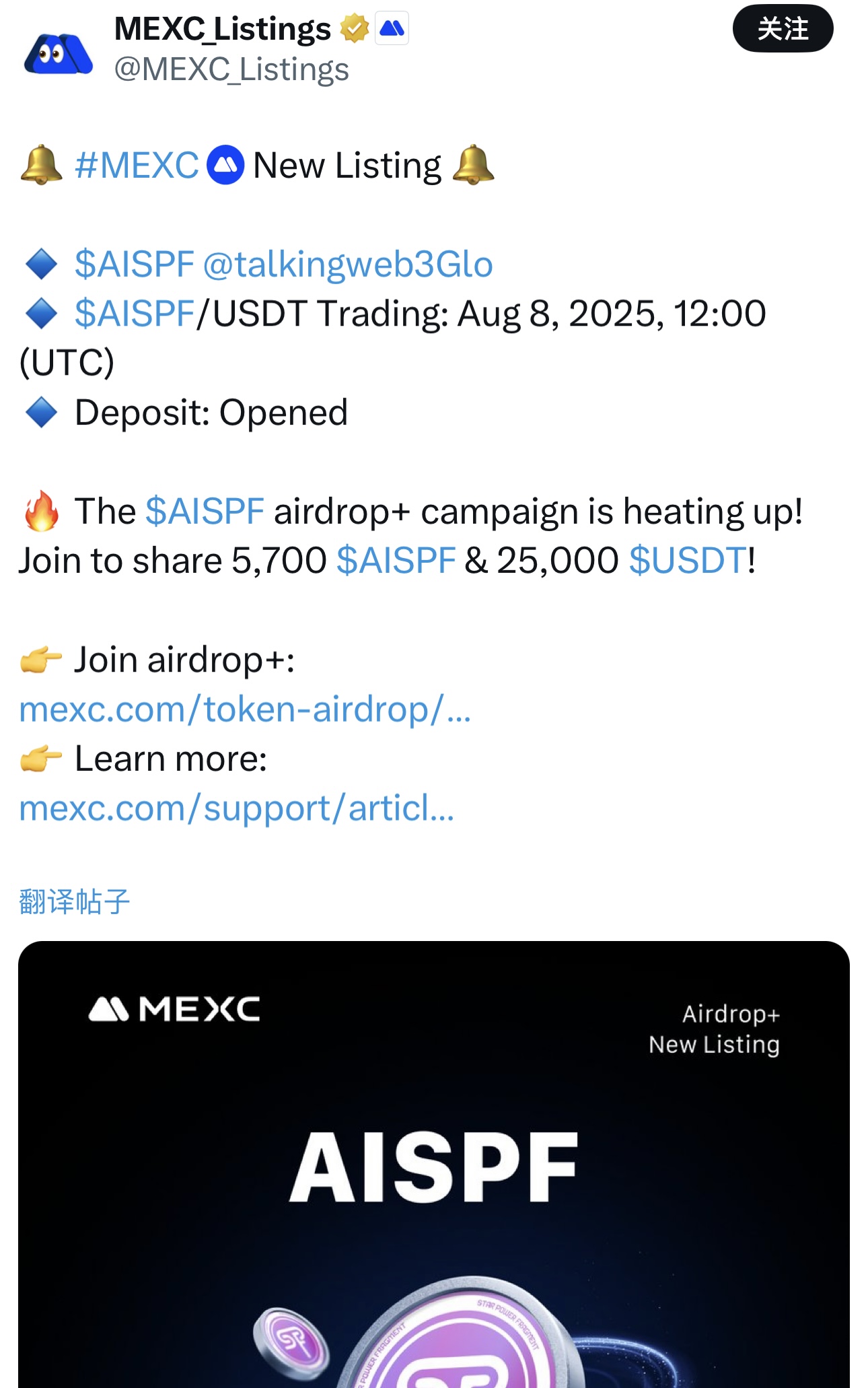 全球品牌曝光:MEXC在全球拥有数百万活跃用户,AISPF将迅速扩大影响力。